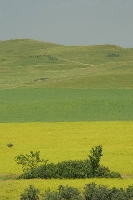 Green Island McKenzie County, North Dakota An island of lush green vegetation appears to float atop a field of yellow-blooming rapeseed, a plant that is used in the production of biodiesel, vegetable oil and animal feed. The adjacent lands add pastel layers to complete a diverse landscape in western North Dakota. |