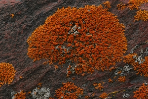 Lichen Cluster GGlacier National Park, Montana Lichen grows on the side of a boulder on the eastern edge of the Rocky Mountain Range. Lichen is a fungus, but feeds itself by gathering the sun’s energy by way of photosynthesis. Without needing a root system for gathering nutrients, lichen is often the sole vegetation in harsh environments where little else grows. |