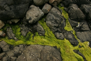 Of Waves Past Cape Perpetua, Oregon A band of seaweed is nestled into a basalt rock that has been shaped by centuries of wave action. This is part of a narrow inlet known as Devil’s Churn, where waves continually pound the rocky coastline, sending sea spray high into the air in a thundering display. |