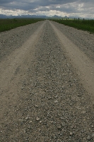 Road to Nowhere Pondera County, Montana A gravel road appears to go on forever across the vast open plains of rural Montana. Gravel roads are much less expensive to build than those that are paved and by comparison blend in more effectively with the natural environment. This area is so lowly populated that in a half hour, only one other car had passed on this road. |