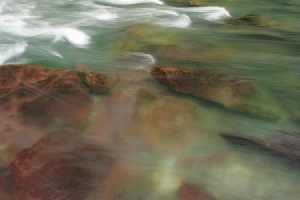 Water Colors Glacier National Park, Montana Vividly colored rocks create an artist’s palette as light reflects from them through the rushing turquoise water of McDonald Creek in Glacier National Park. The diversity of minerals creates contrasting colors that form the beds of many rivers throughout the park. |