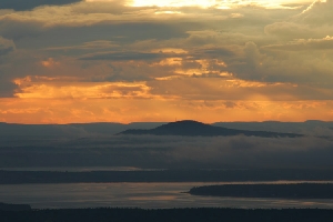 Atlantic Storm Acadia National Park, Maine Maine’s coast is often enshrouded in fog and rain clouds that move in rapidly from the Atlantic Ocean. This is the view looking west from atop Acadia National Park’s Cadillac Mountain, the highest coastal in the eastern United States. |