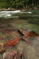 McDonald Creek Glacier National Park, Montana McDonald Creek exhibits a rainbow of hues as cool, turquoise water rushes over vibrantly colored rocks. A still pool on the river’s edge provides a clear view to the river’s bottom, consisting of dozens of vivid colors. Soon the water will enter Lake McDonald, a ten mile long, 472 foot deep lake that was carved long ago by a huge glacier. |