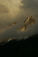 Obscured by Clouds (Limited Edition of 250) Grand Teton National Park, Wyoming Ominous clouds enshroud Grand Teton, the highest peak in the park at 13,770 feet. Over millions of years, earthquake-induced pressure has lifted the mountains high above a falling valley. The result is a range of jagged peaks and exposed canyons that rise abruptly above a flat valley absent of any foothills. |