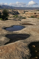 Potholes Natural Bridges National Monument, Utah Rain from a passing storm has left water in these ‘potholes’, holes that have been eroded into the rock from water. Within the day, these potholes will be dry again until the next rain passes through the area.