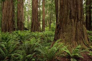 Redwood Grove Redwood National Park This old growth grove of coast redwoods rises 300 feet abovethe forest floor, which is commonly lined with ferns up several feet wide. Heavy seasonal rains and a routine supply of moisture from the Pacific Ocean combine to produce ideal growing conditions for the world’s tallest trees, many of which are thousands of years old. |