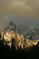 Storm Light Grand Teton National Park, Wyoming Storms approach the Teton Range suddenly. After sunshine filled the area only minutes before, this storm moved in, creating an ominous ceiling above Grand Teton. Cold fronts converge with the day’s rising heat to create rapidly changing weather conditions in most afternoons. |