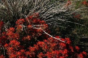 Life in the Desert Mono Lake, California In the vast valley of the eastern foothills of the Sierra Nevada range, Indian Paintbrush blooms a fiery red in sharp contrast to its bleak surroundings. Everything surrounding these vibrant flowers is covered white with calcium carbonate from the massive, high-alkaline Mono Lake nearby. |