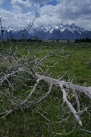 On the Hole Grand Teton National Park, Wyoming A piece of dead wood from an Aspen tree continues its long rest in view of the distant Teton Range. Each Aspen tree will live for 50 to 150 years, but their root systems can actually survive and spawn new growth under the right situations over a period of centuries. |